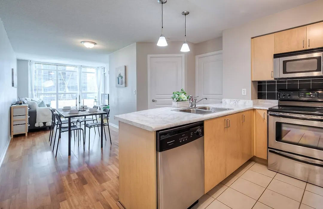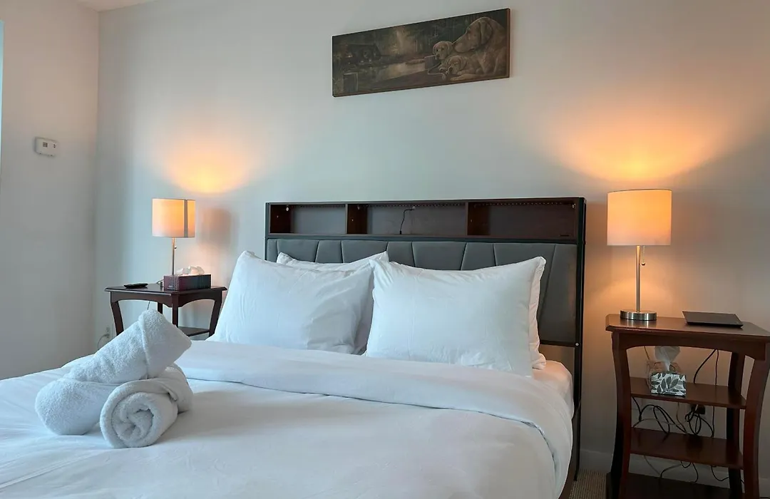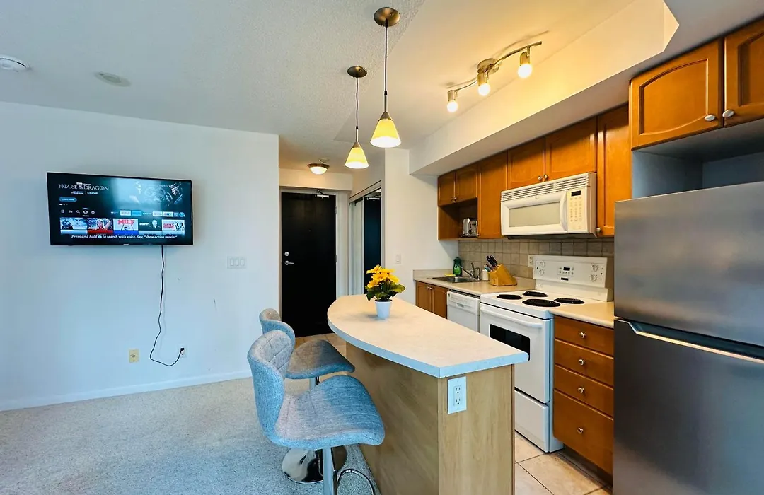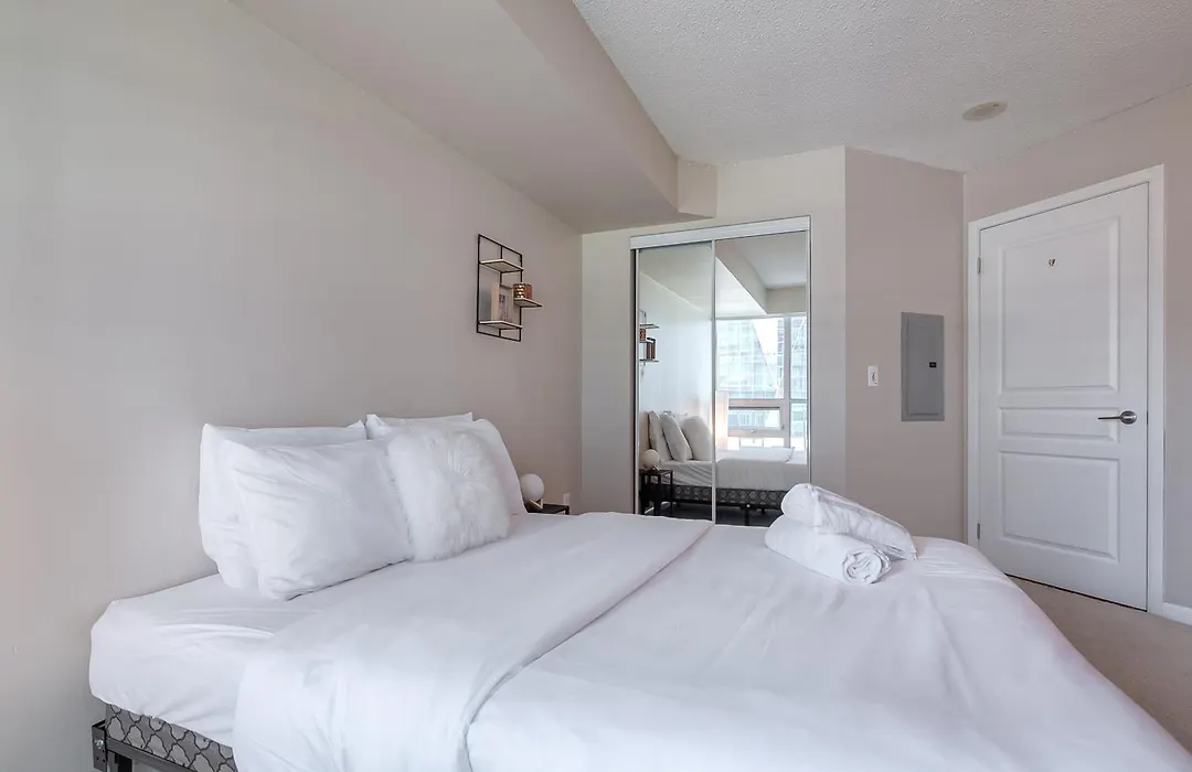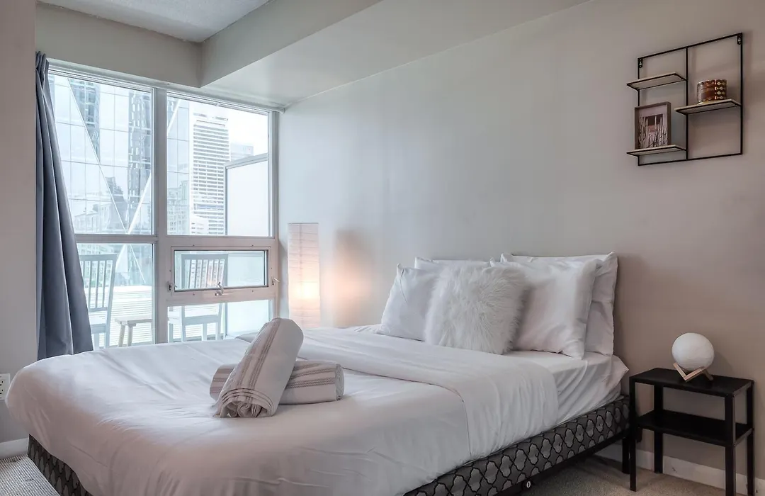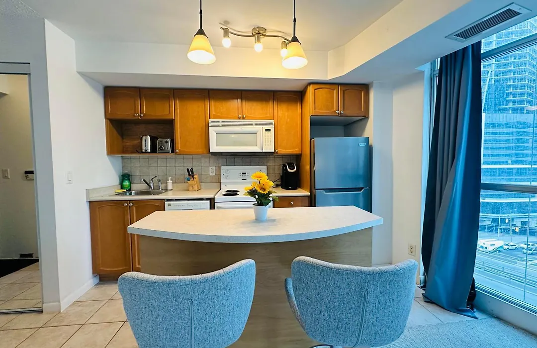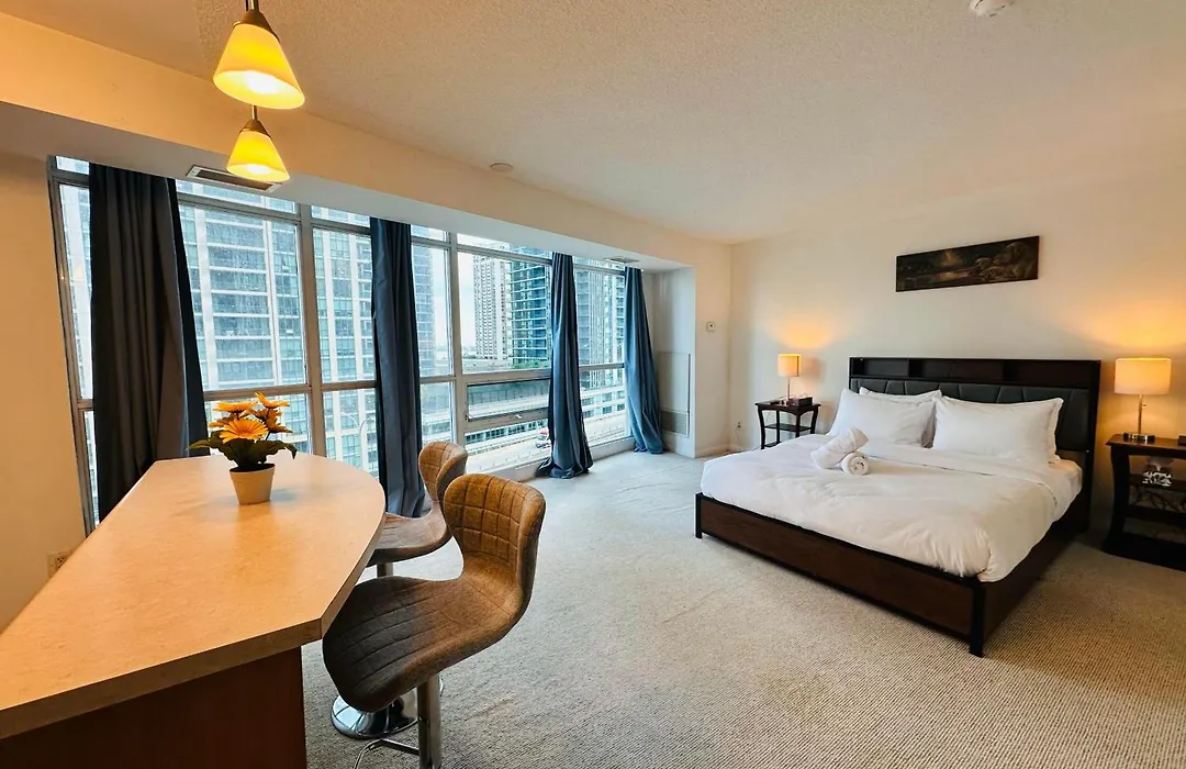 トロントのハ-バ-フロント地区にあるRivetstays - The Yongeアパ-トはビリ-・ビショップ・トロント・シティ-空港から5キロメ-トル離れています. ユニオン駅から徒歩約10分に位置するこの宿泊施設は,1のベッドル-ム,1のバスル-ム,器具でいっぱいの台所で構成されています.