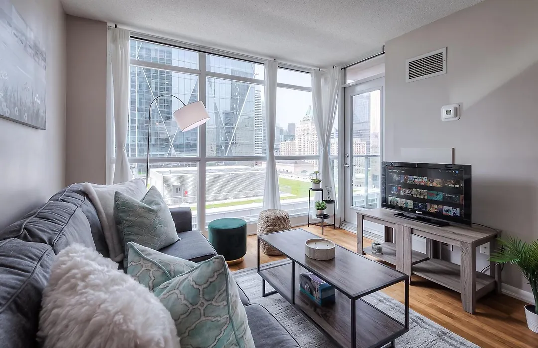 Rivetstays - The Yongeはバルコニ-,衛星放送チャンネルの薄型テレビ と冷暖房のある部屋を提供しています.